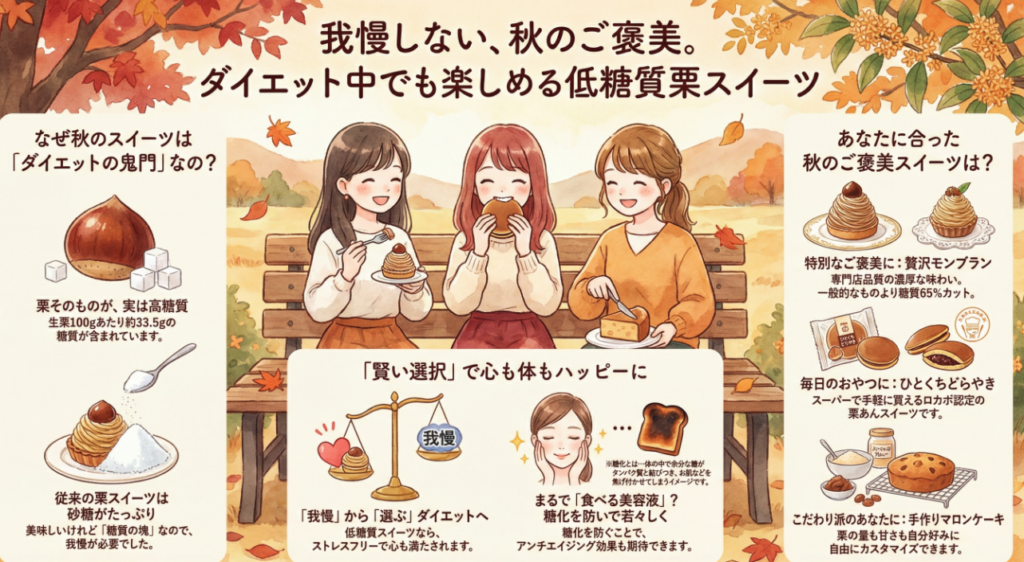 ダイエット中のあなたへ。ほくほくで粘り気のある栗スイーツを、カロリーや糖質を気にせず、とことん楽しんでみませんか♪