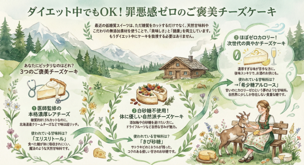 今回は、数ある低糖質チーズケーキの中から、製法や素材に独自のこだわりを持つ3つのブランドを厳選。
